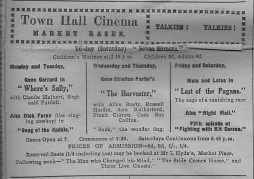 - A scanned file of Firths Picture of Market place hall showing it as a cinema in the 1950s with copyright permission to use it